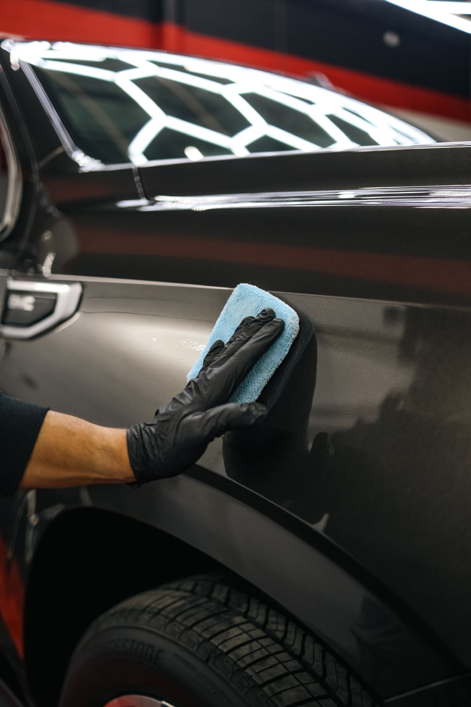 When you apply the ceramic coating, it forms a water-repellent barrier on your car's paint. This barrier keeps water minerals away from your paint, preventing water spots and swirl marks.